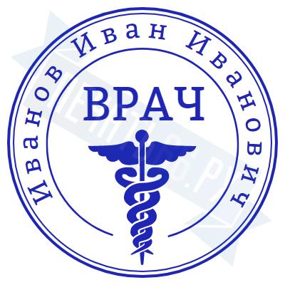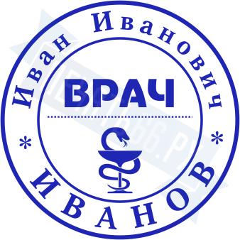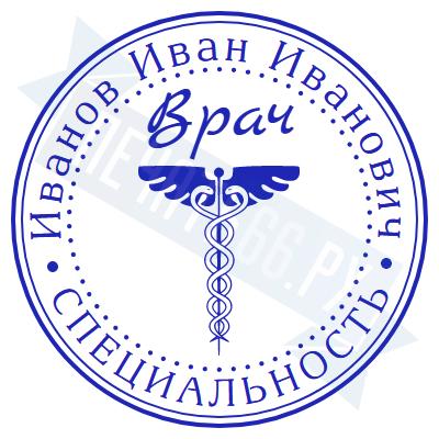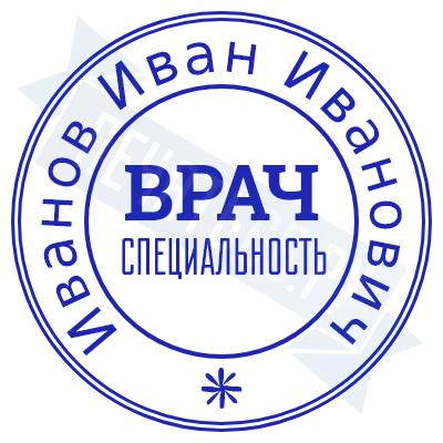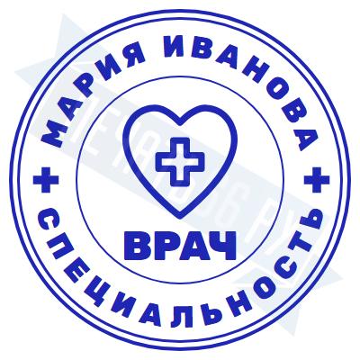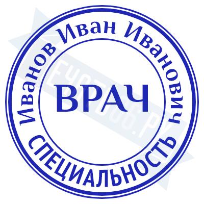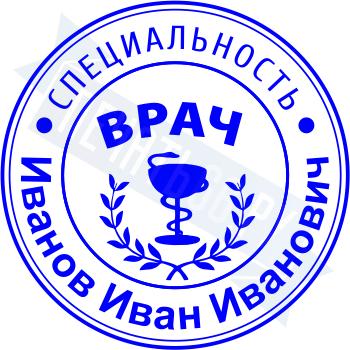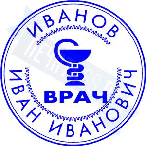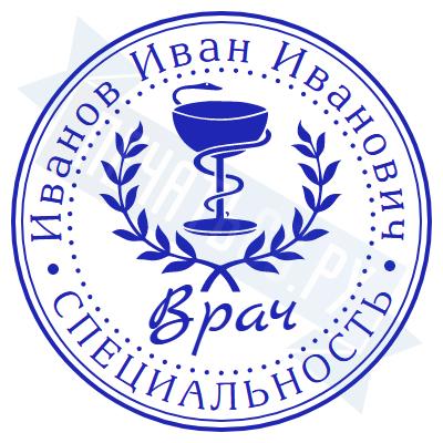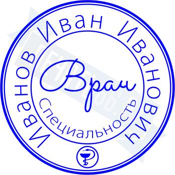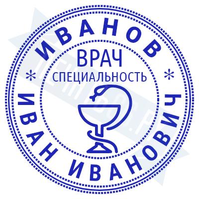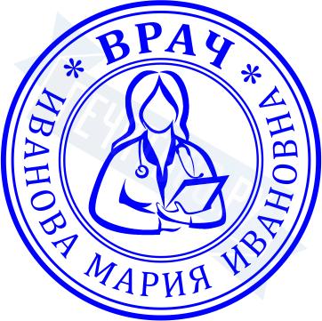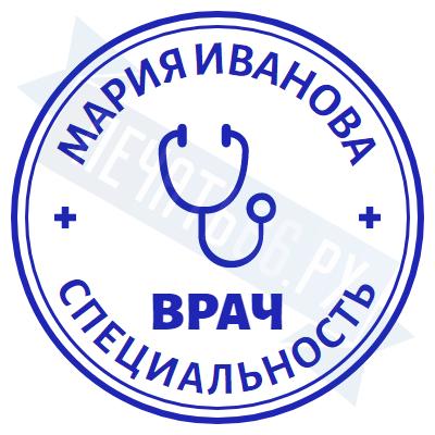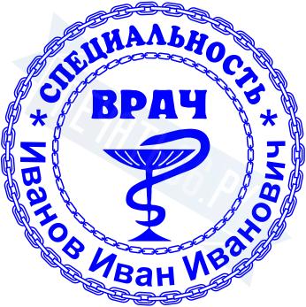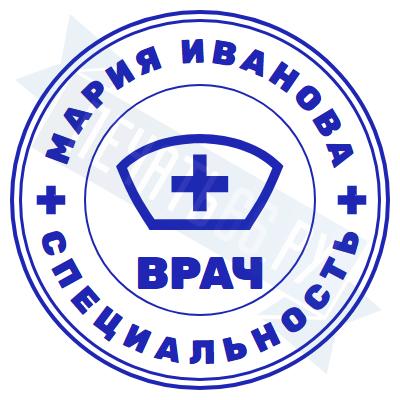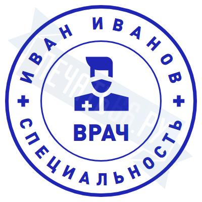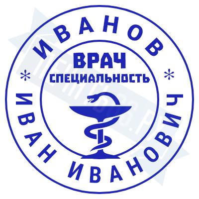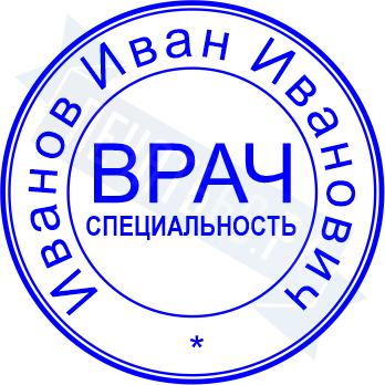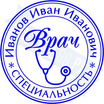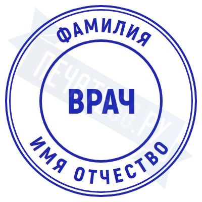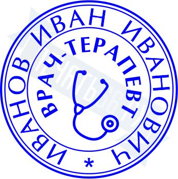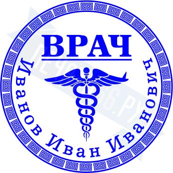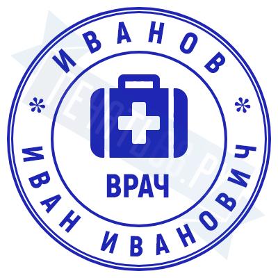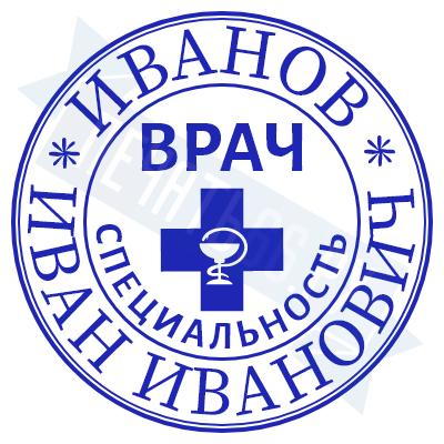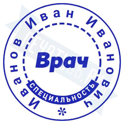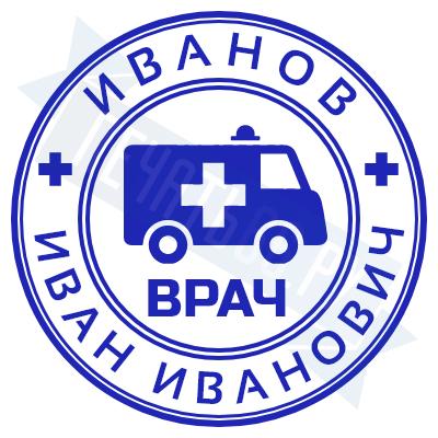 • Печать врача на металлической оснастке Врача карманная D23 с подушкой по цене 1951 рубль и еще 46 видов печатей врача