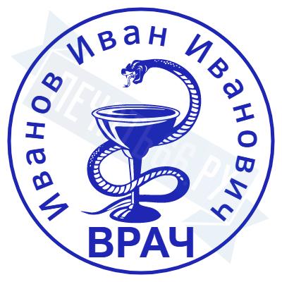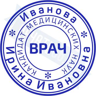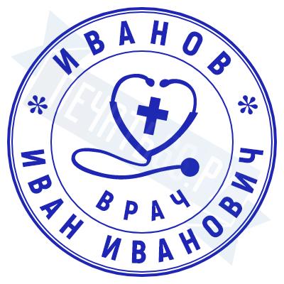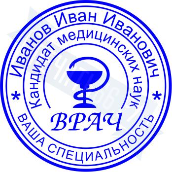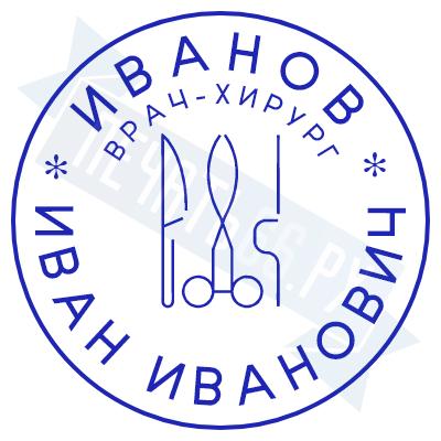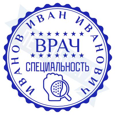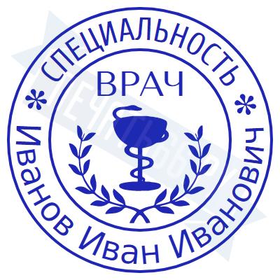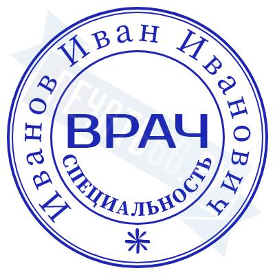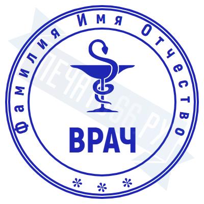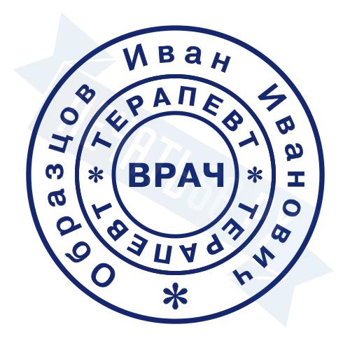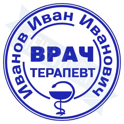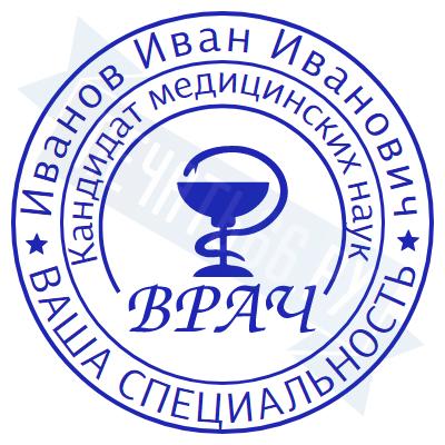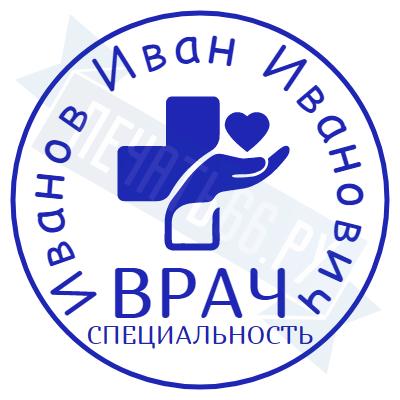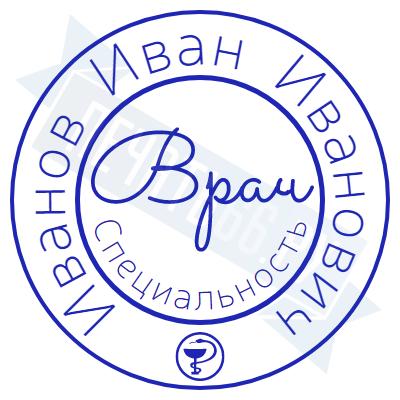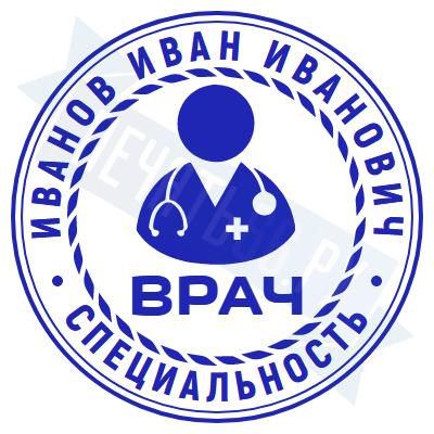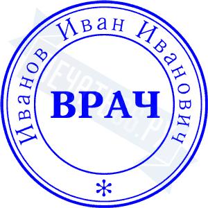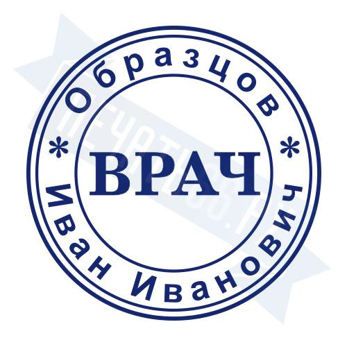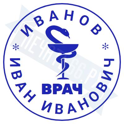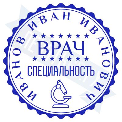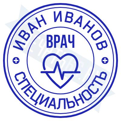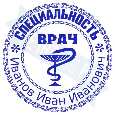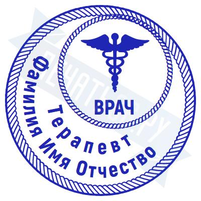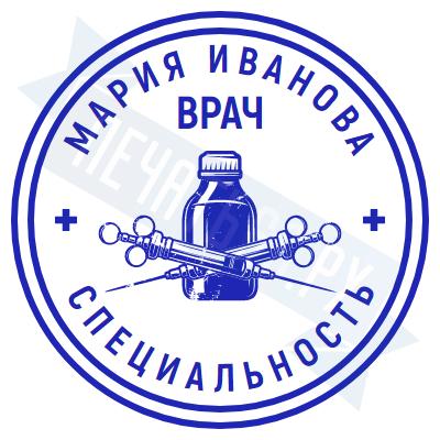 • Печать врача на металлической оснастке Врача карманная D23 с подушкой по цене 1951 рубль и еще 46 видов печатей врача